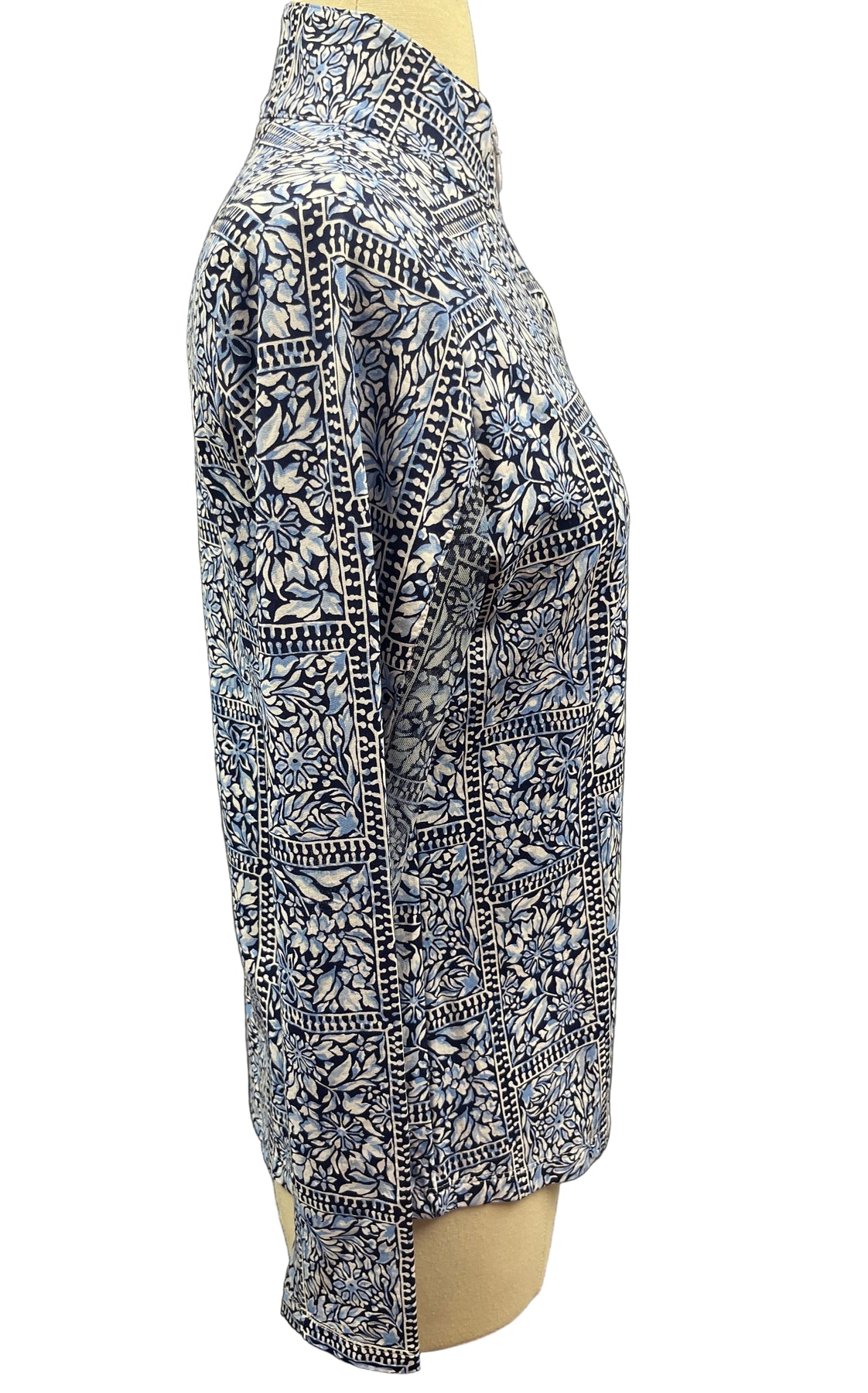 IBKUL Long Sleeve Mock Neck Top - Blue Floral- Small