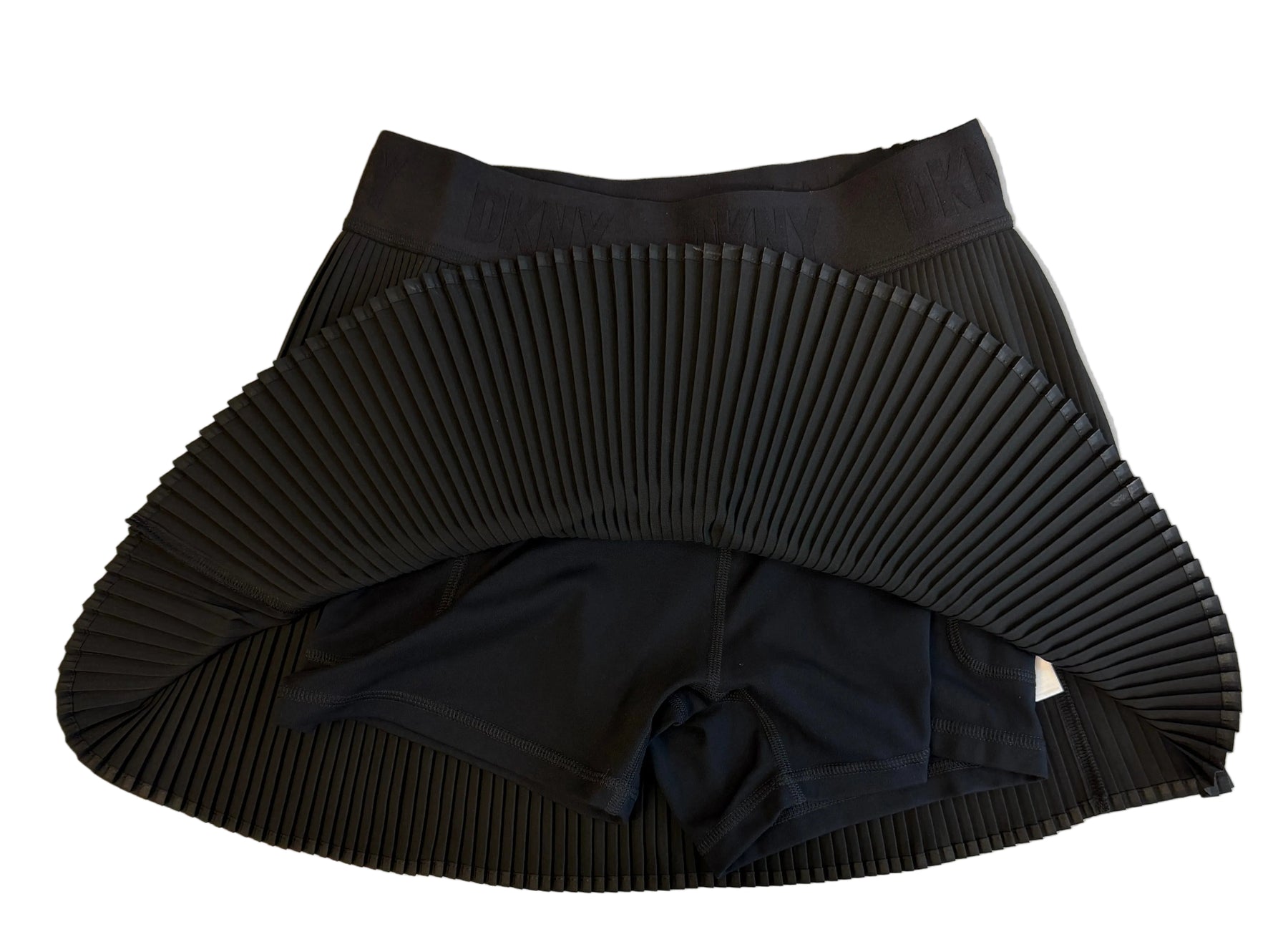Elevate your athletic game with this sleek DKNY Sport skort in classic black. Featuring sharp pleats for a polished silhouette and a signature DKNY logo on the waistband, it's the perfect blend of sporty and chic. The ribbed fabric offers comfort and flexibility for all your on-court adventures. Whether you're hitting the gym or grabbing coffee after, this versatile piece keeps you looking effortlessly put-together.