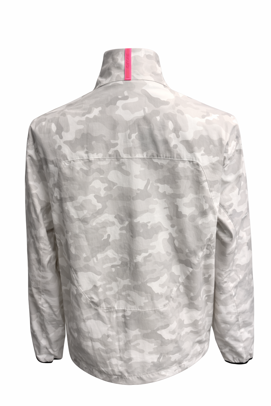 Experience effortless layering with this G/FORE Men's Parachute Windbreaker Jacket in Camo Snow. The full zip design offers quick adjustability for changing conditions, while two zippered pockets keep essentials secure and within reach. A striking neon logo tab on the back collar adds a bold finishing touch that catches the eye. Lightweight and versatile, this windbreaker transitions seamlessly from the course to casual wear, making it an essential addition to any active wardrobe.