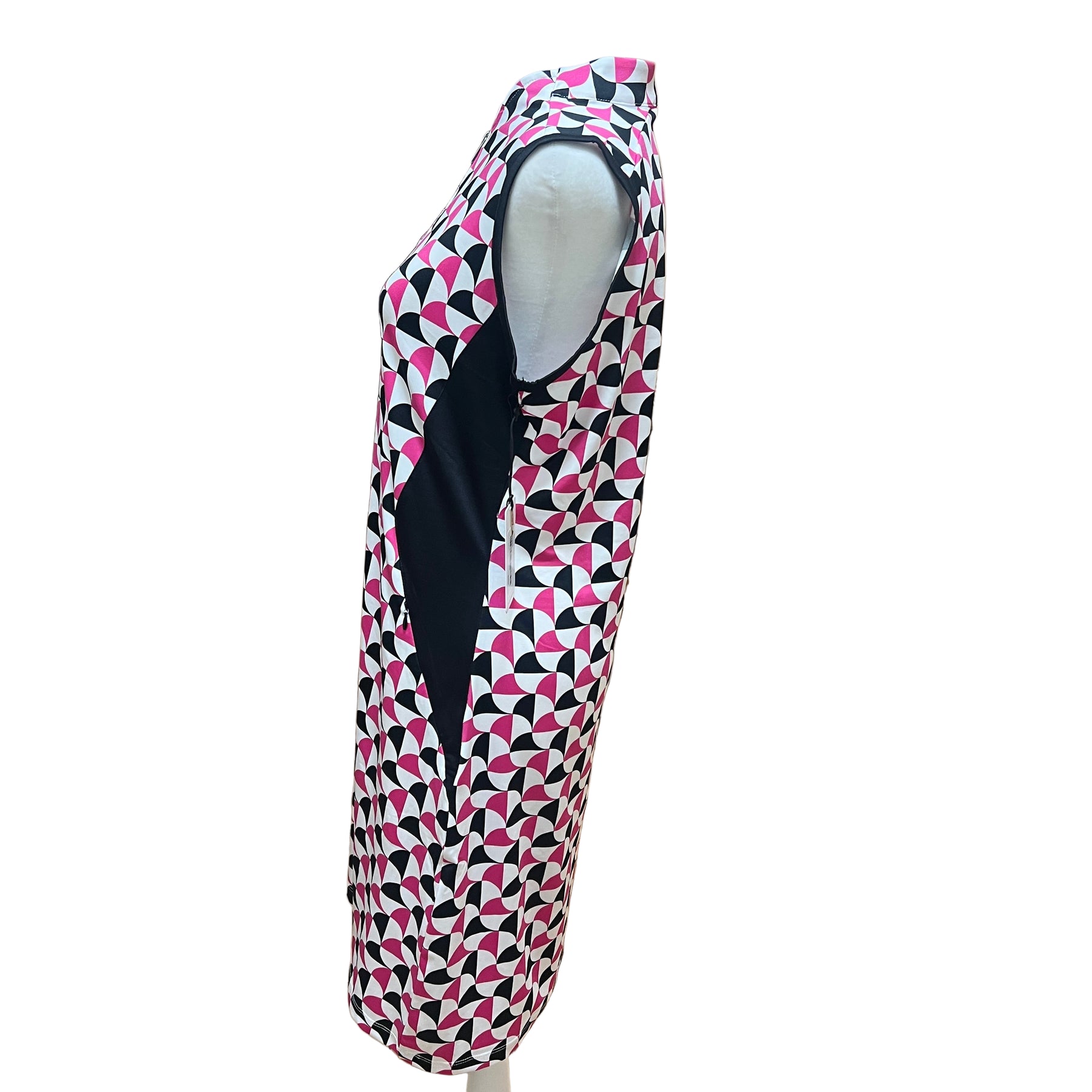 Stay cool and confident in the Tail Rosalva Sleeveless Dress - Crescent. With its sleek mandarin funnel neck and handy zipper pockets, this dress combines style and function effortlessly. The moisture-wicking performance fabric with UPF 50+ protection keeps you comfortable and sun-safe all day. Designed with shorties for ease of movement and a flattering 36.5" length, it’s perfect for active days with a playful twist. Crafted from 90% polyester and 10% spandex, it offers stretch and durability wherever your adventures take you.