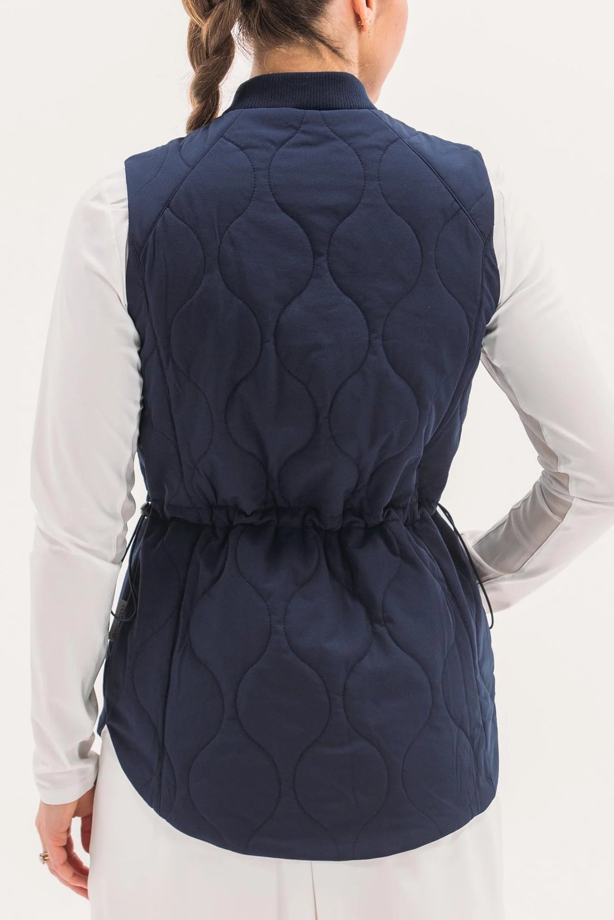 Our packable quilted vests are ideal for layering: lightweight and not bulky. Featuring a nylon water-repellent shell filled with insulating synthetics that won't harm any geese. Even better, they pack in a neat little pouch, perfect for travel or mid-round temperature drops. This long-line version features a two-way zip, pockets, and waistband toggle for perfecting your personal fit.