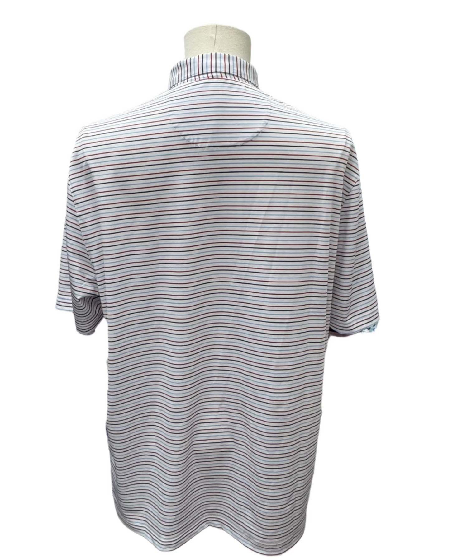 Elevate your golf game with our Greg Norman ML75 Stretch Stripe Polo. Made with cutting-edge PLAY DRY technology, four-way stretch, and UPF 50+ sun protection, this stylish and timeless striped polo provides unbeatable comfort and performance on and off the course. Available now in white and size large.