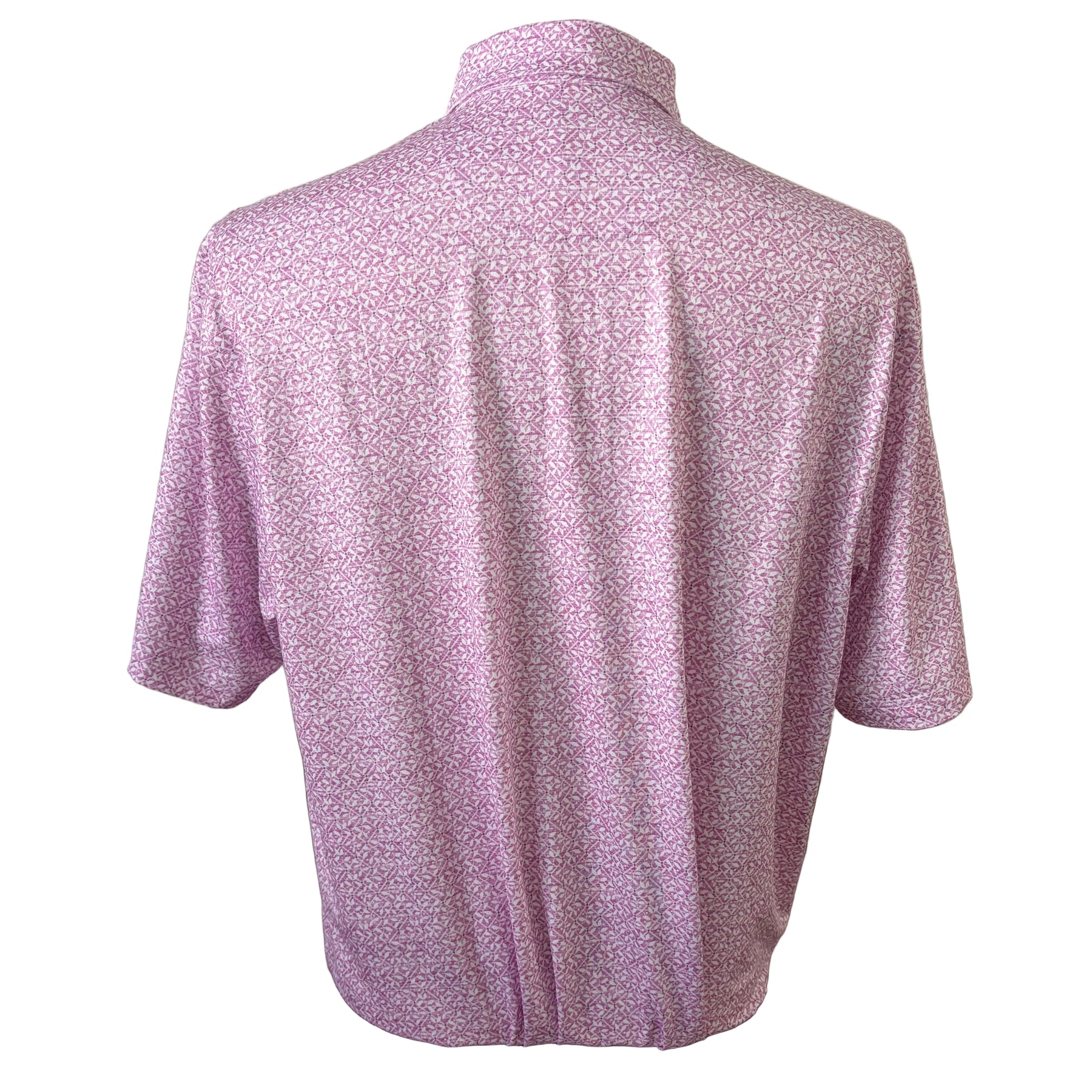 Elevate your golf game with this Greg Norman Stretch Mesh polo, crafted from a premium blend of 89% polyester and 11% spandex for exceptional comfort and mobility. The invisible mesh construction keeps you cool and dry through every swing, while the tailored spread collar adds a polished, refined look. Featuring the eye-catching Vivid Vines print in a striking shark colorway, this piece combines style with performance. The signature Shark Collection logo on the right sleeve completes the design.