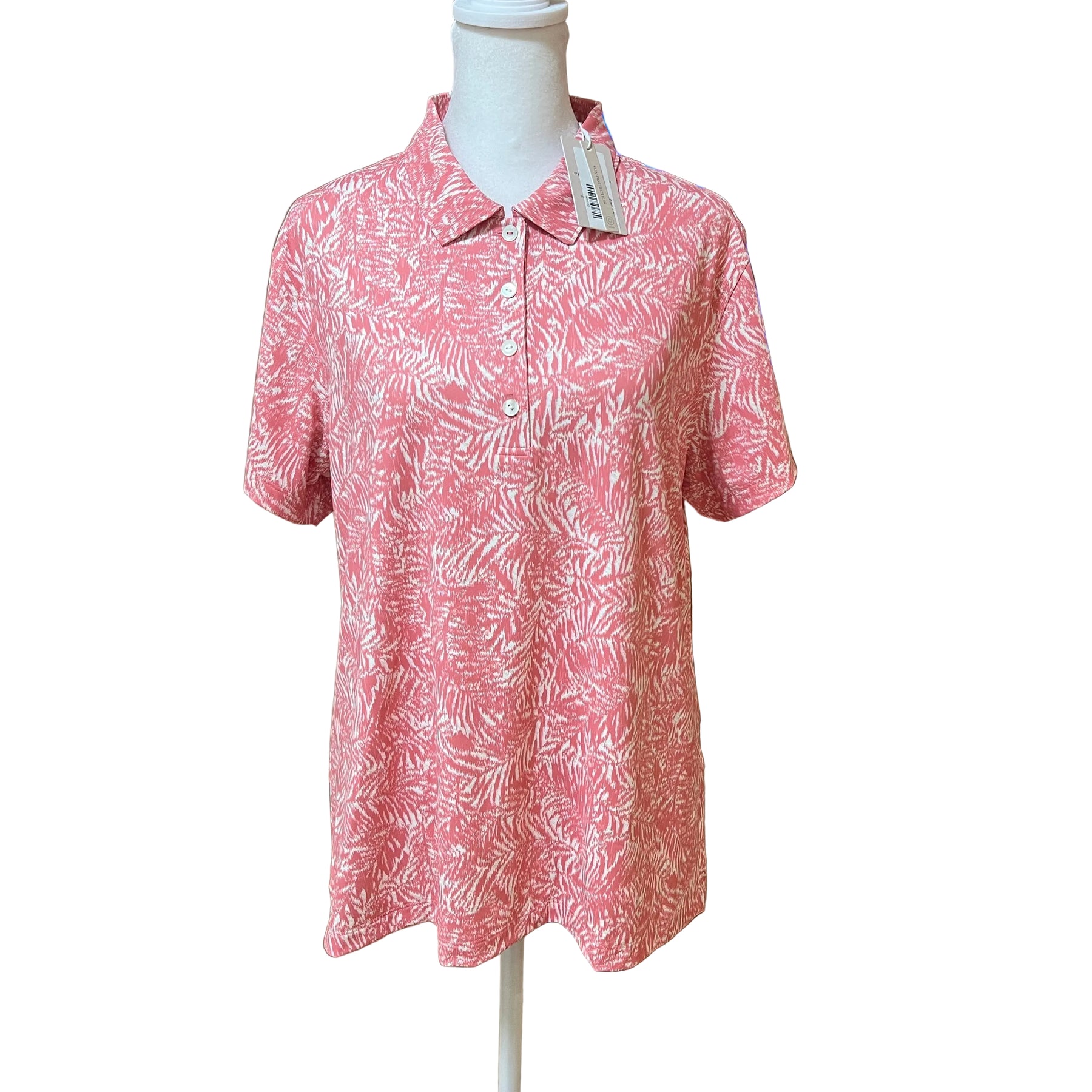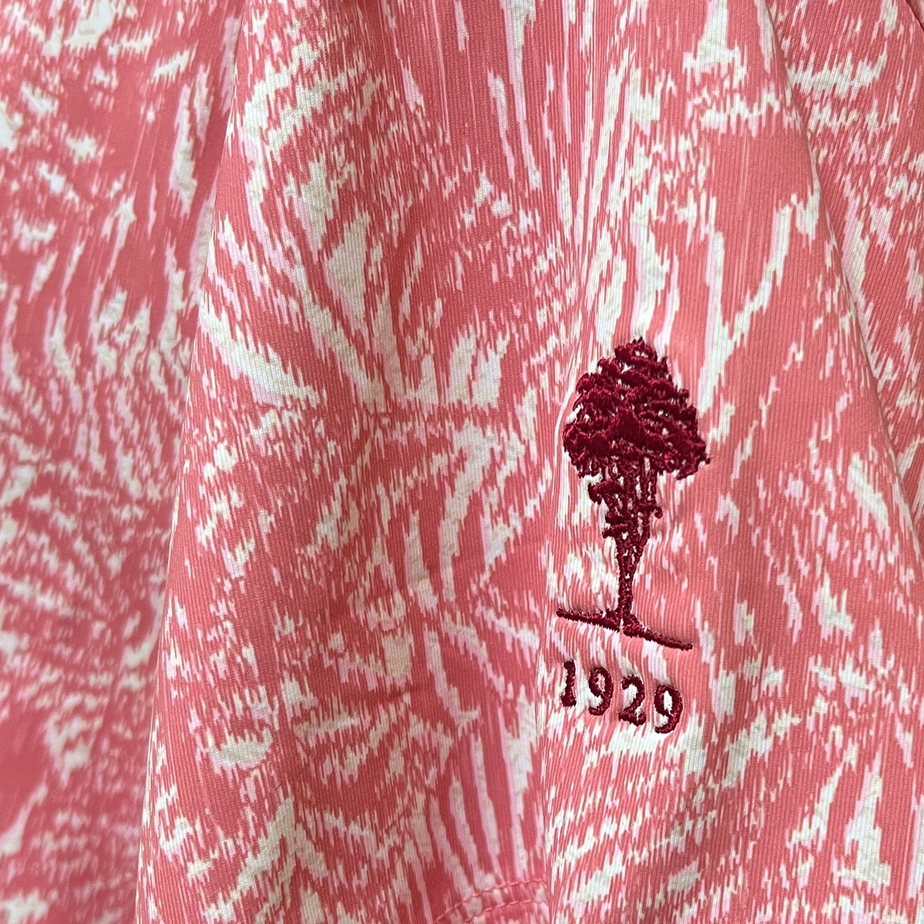 This Peter Millar Golf Polo in Pink Palm features a classic four-button down design with moisture-wicking fabric to keep you dry and comfortable on the course. Built-in sun protection shields your skin from harmful UV rays during long rounds. The Rancho Santa Fe Country Club logo is embroidered on the sleeve for a polished, branded look. Perfect for golfers who demand both style and performance.