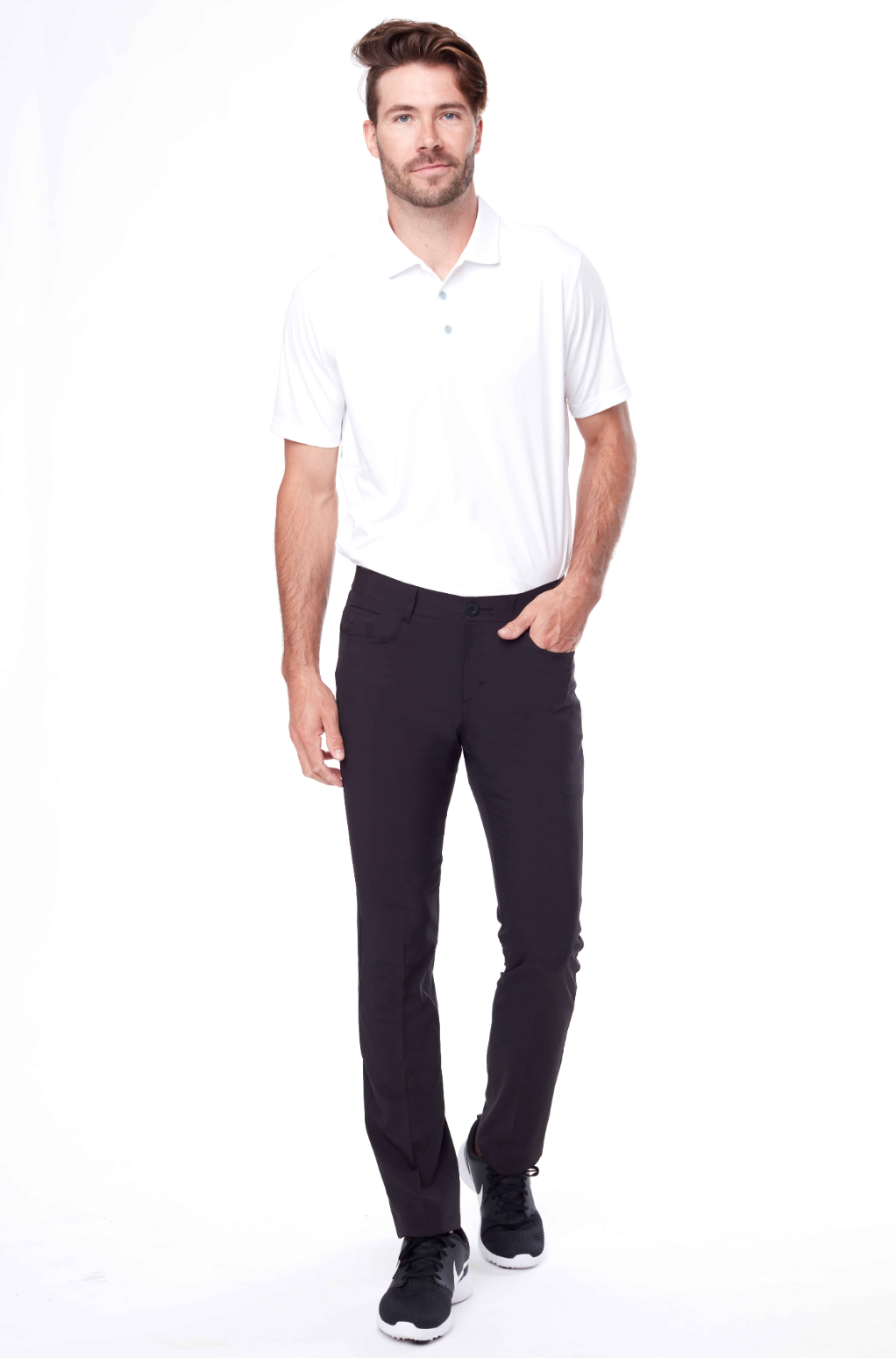 Get your game on with the Cloud performance pant. Made with a luxuriously soft stretch fabric that moves with the body so you can play your best round. The 5-pocket design gives ample room to store all your golf essentials and the gripper gel interior waistband ensures your shirt stays in place. Belt loops and a classic top button-fly add a polished look.